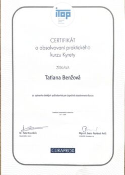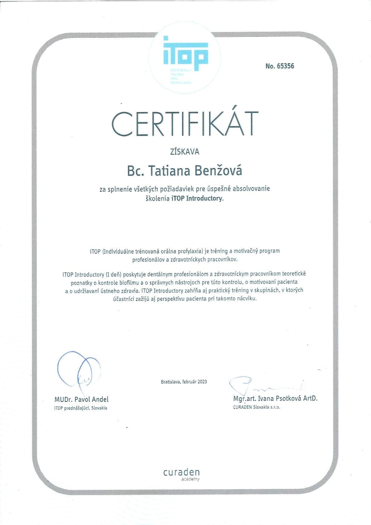 Tatiana je zkušená dentální hygienistka pocházející z Bratislavy, která na naší stomatologické klinice Šikl a Caha působí od začátku roku 2024. Své odborné vzdělání získala na Slovenské zdravotnické univerzitě (SZU) v Bratislavě, kde si osvojila znalosti a dovednosti v oblasti dentální hygieny. Specializuje se na prevenci zubního kazu, parodontózy a bělení zubů, přičemž její odborné zaměření zahrnuje i péči o orální mikrobiom, což je klíčový aspekt zdraví ústní dutiny. Při své práci používa dentální mikroskop, který jí umožňuje provádět vysoce přesné a detailní ošetření. Své znalosti neustále prohlubuje účastí na odborných kurzech a seminářích, aby svým pacientům mohla poskytovat nejmodernější péči.